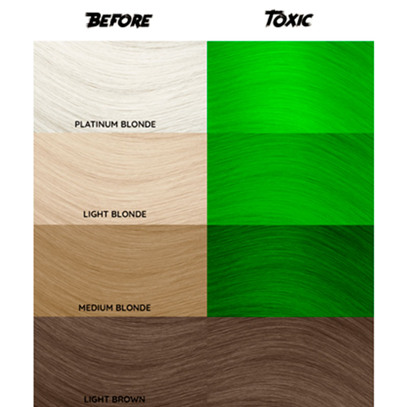Coloración en crema semi-permanente. Es NEON: presentamos TOXIC UV, este verde ultrabrillante no es para los débiles de corazón. Haz que se detengan y miren, con un tono que resalta tanto con luz natural como con luz negra. Para obtener los mejores resultados, aplíquelo sobre cabello rubio pálido o platino.
